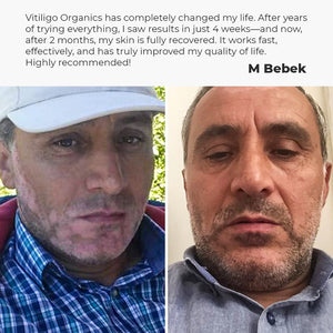 Vitiligo Organics is a natural remedy made specifically for people living with vitiligo. It supports the skin’s natural balance and appearance on areas affected by vitiligo, with a gentle, plant-based formula suitable for regular use.